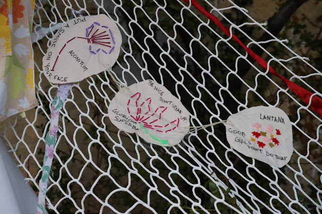 needles, threads and much laughter we put up our instillation. Knitters Revenge